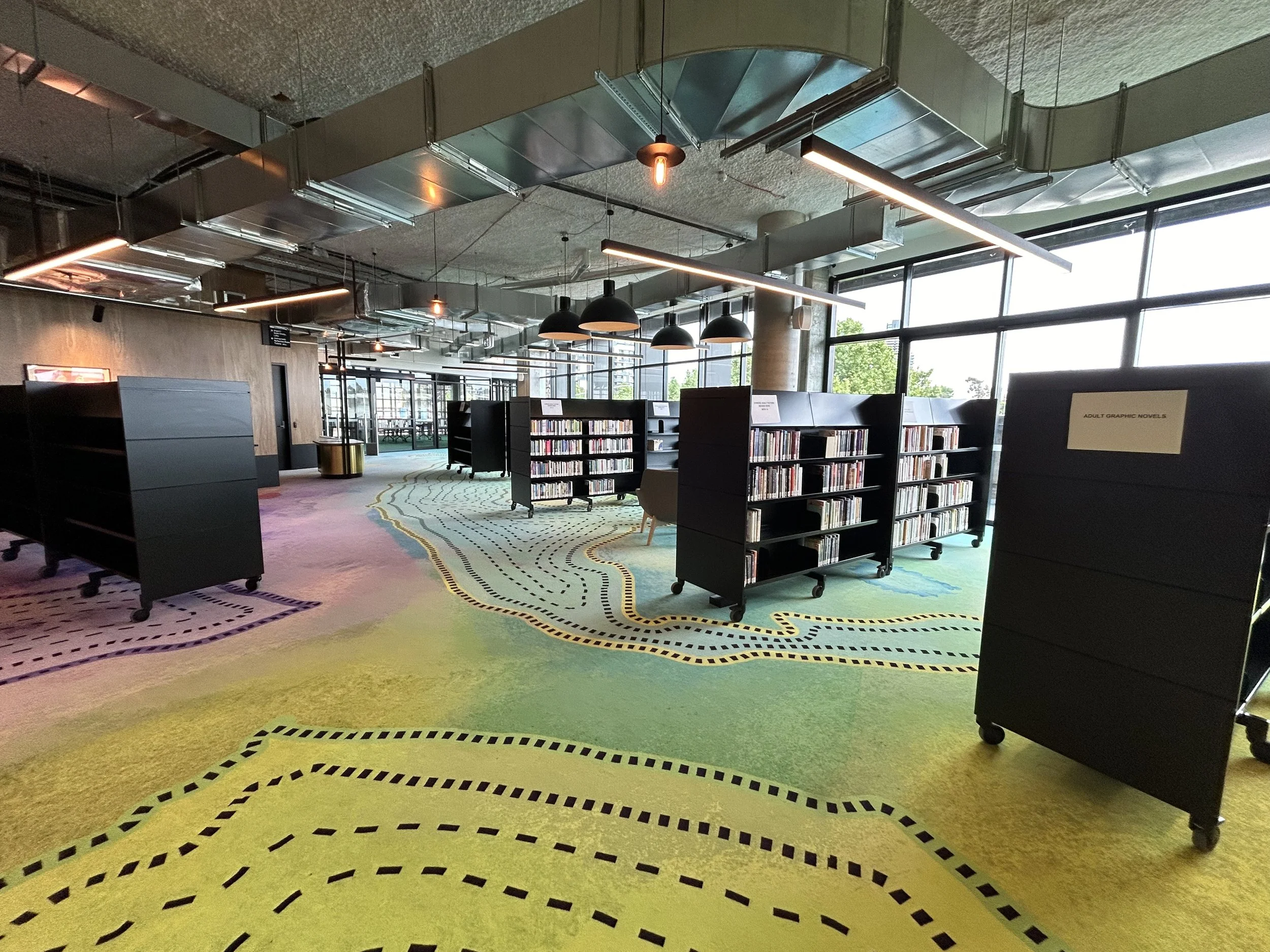 Library spaces (for example, carpet or flooring designs, furniture or window treatments)